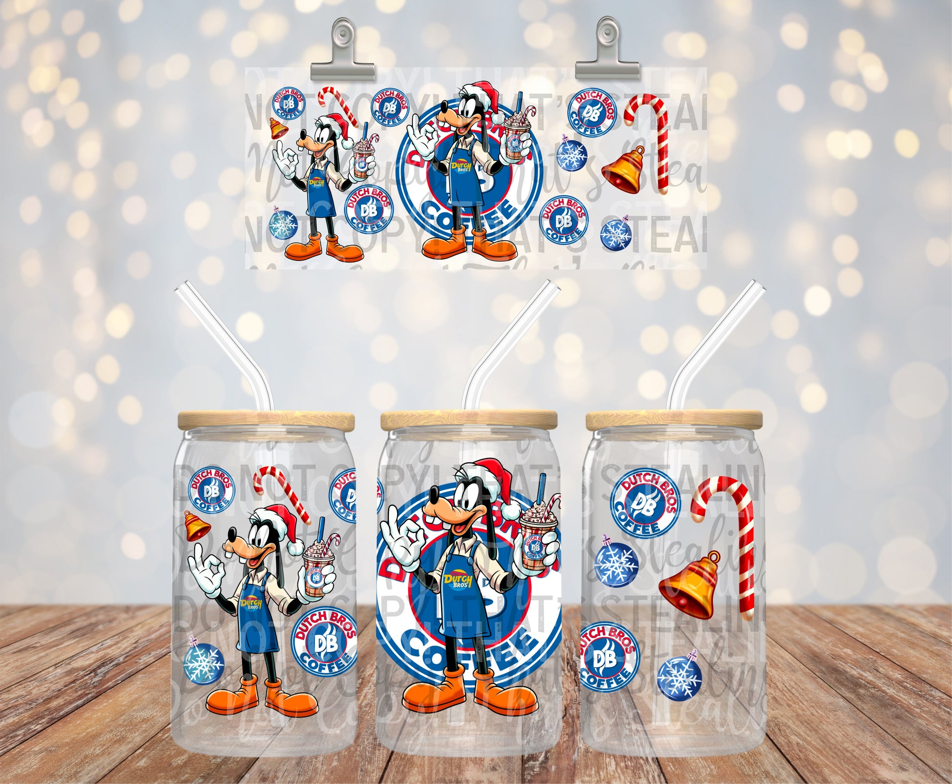 Goofy Dutch Coffee Christmas. 16 oz UV DTF Cup Wrap.