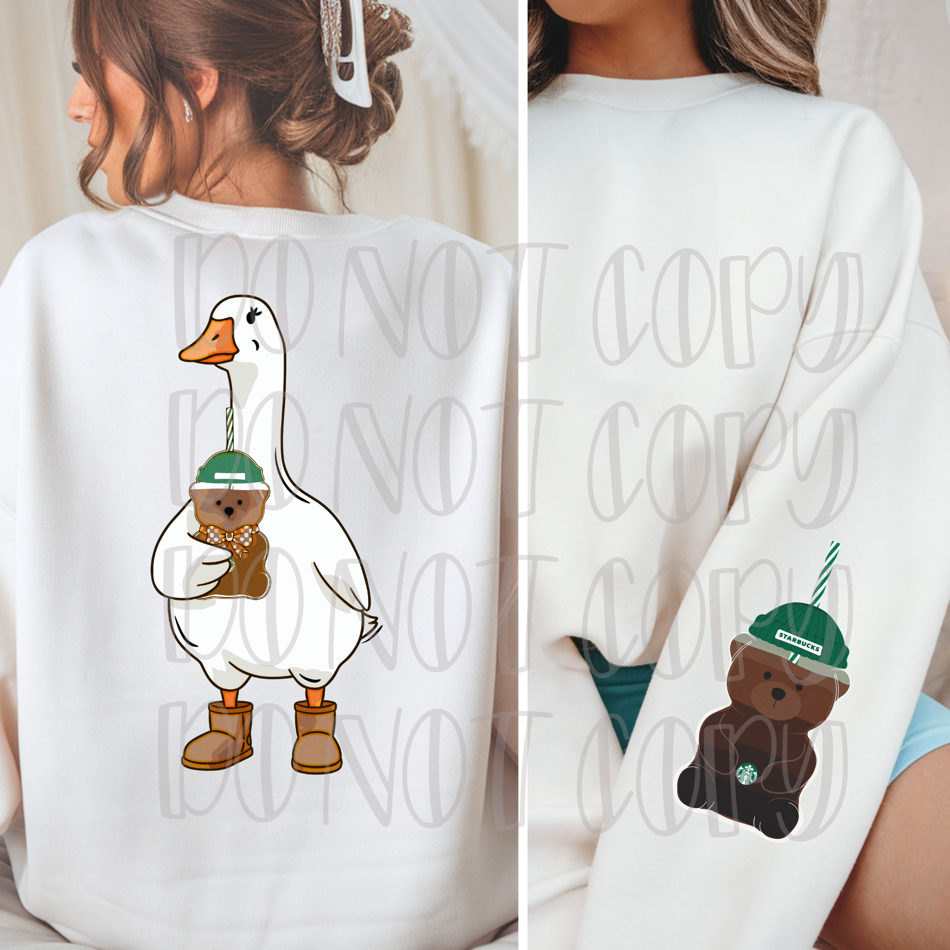 Goose Holding Bear. Pocket sold separately. Please add to cart if you wish to purchase.