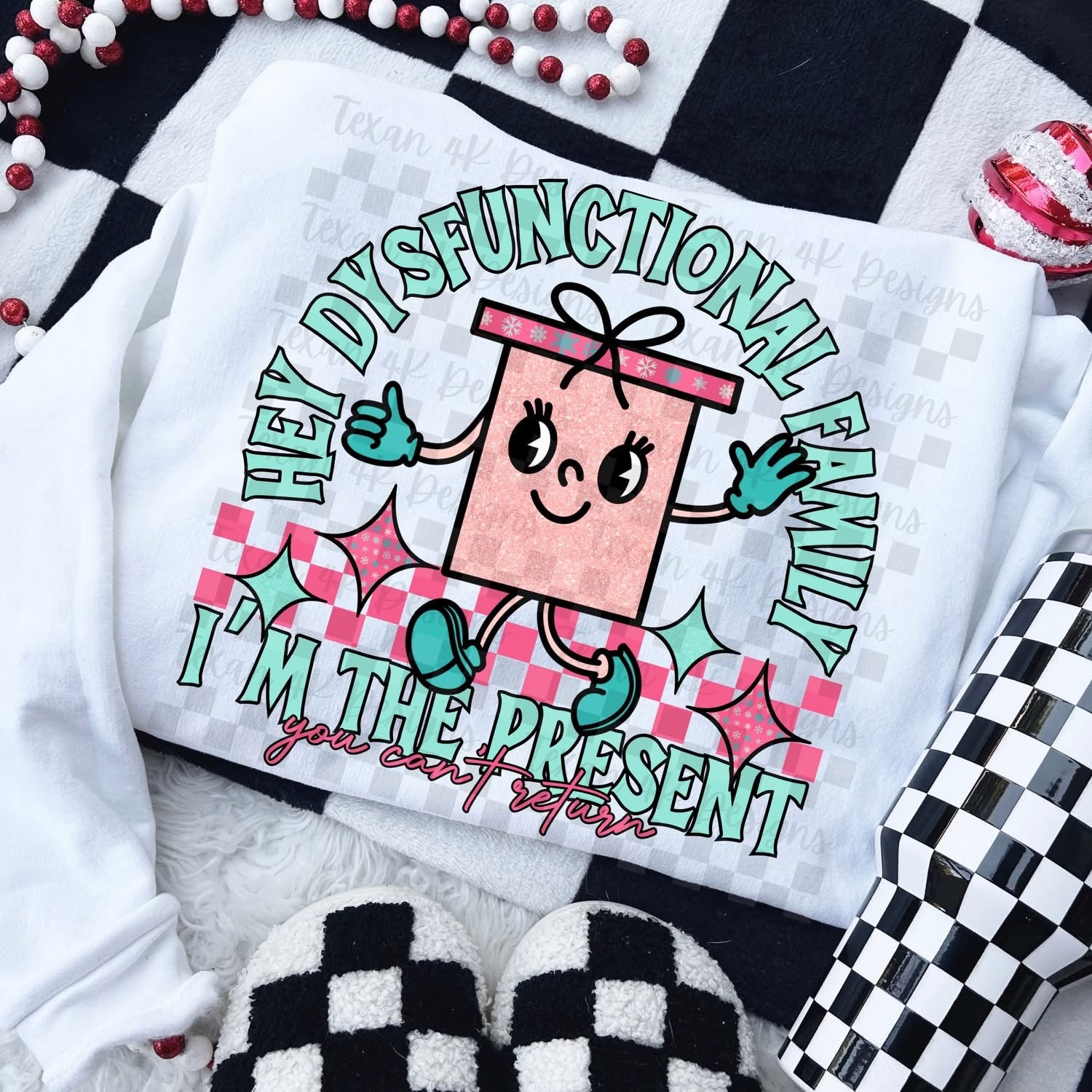 Hey Dysfunctional Family I'm the Present You Can't Return. Pocket sold separately. Please add to cart if you wish to purchase.