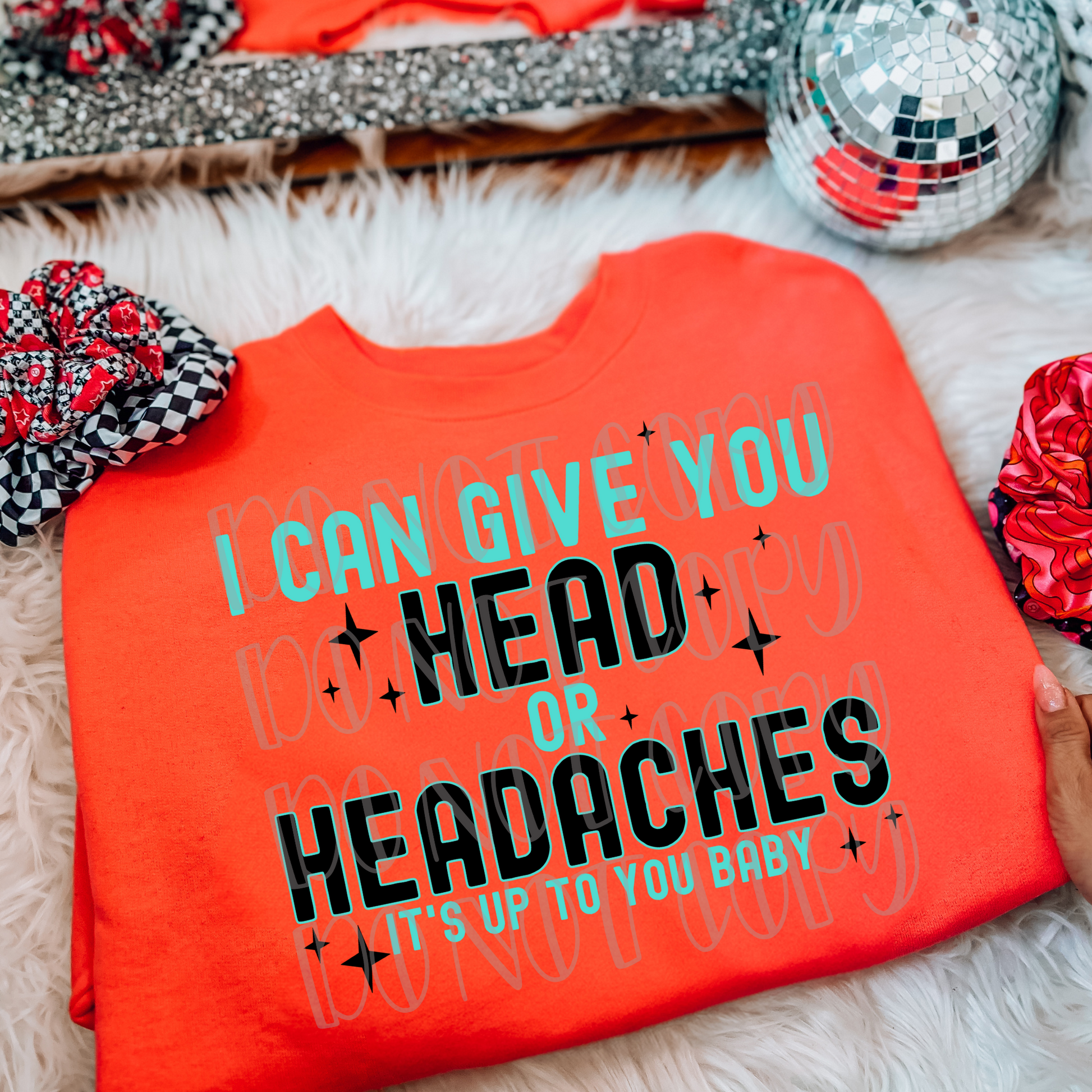 I Can Give You Head or Headaches It's Up To You Baby. Pocket sold separately. Please add to cart if you wish to purchase.