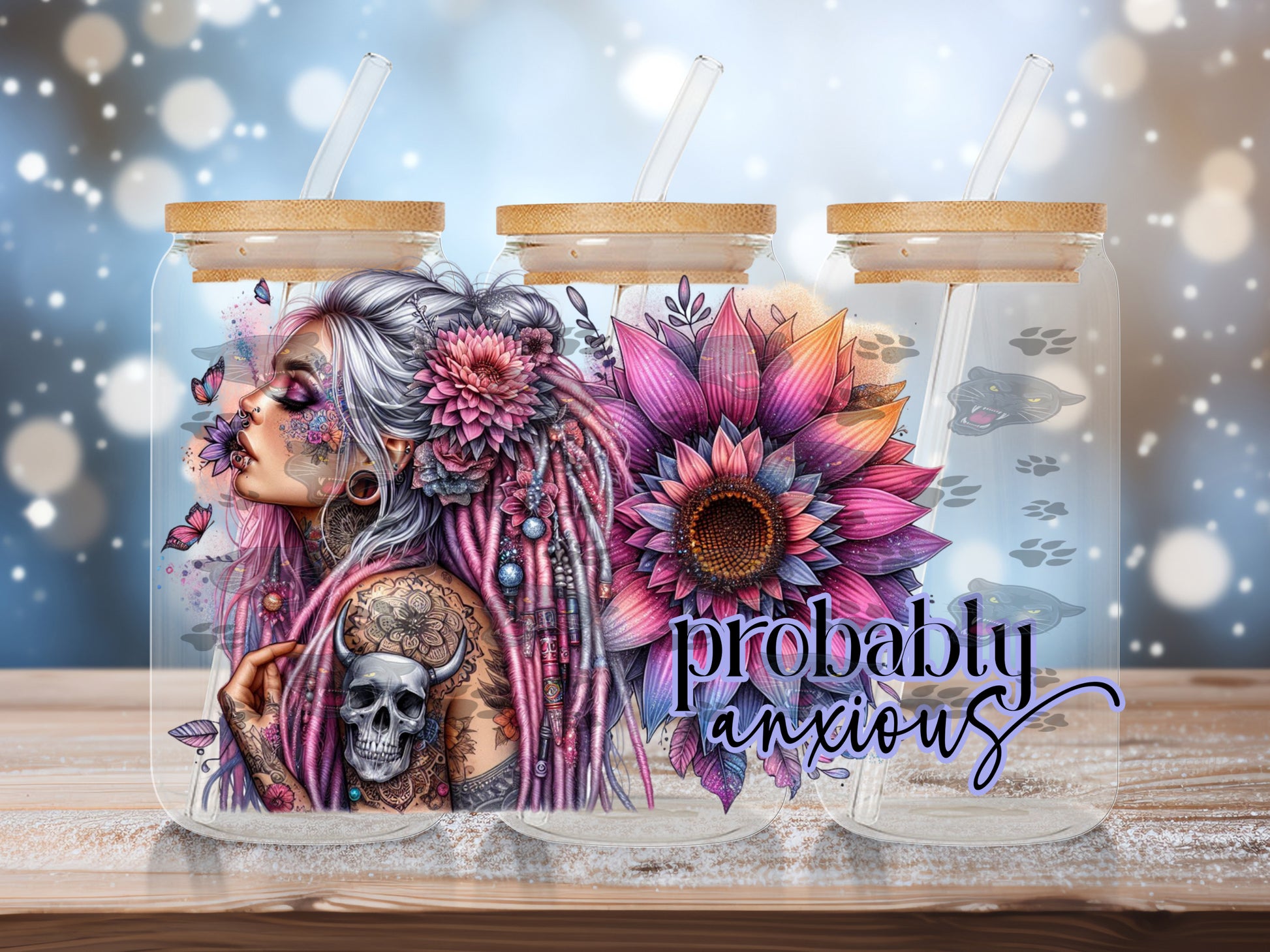 Probably Anxious. UV DTF for 16 oz glass can. Ready to press.