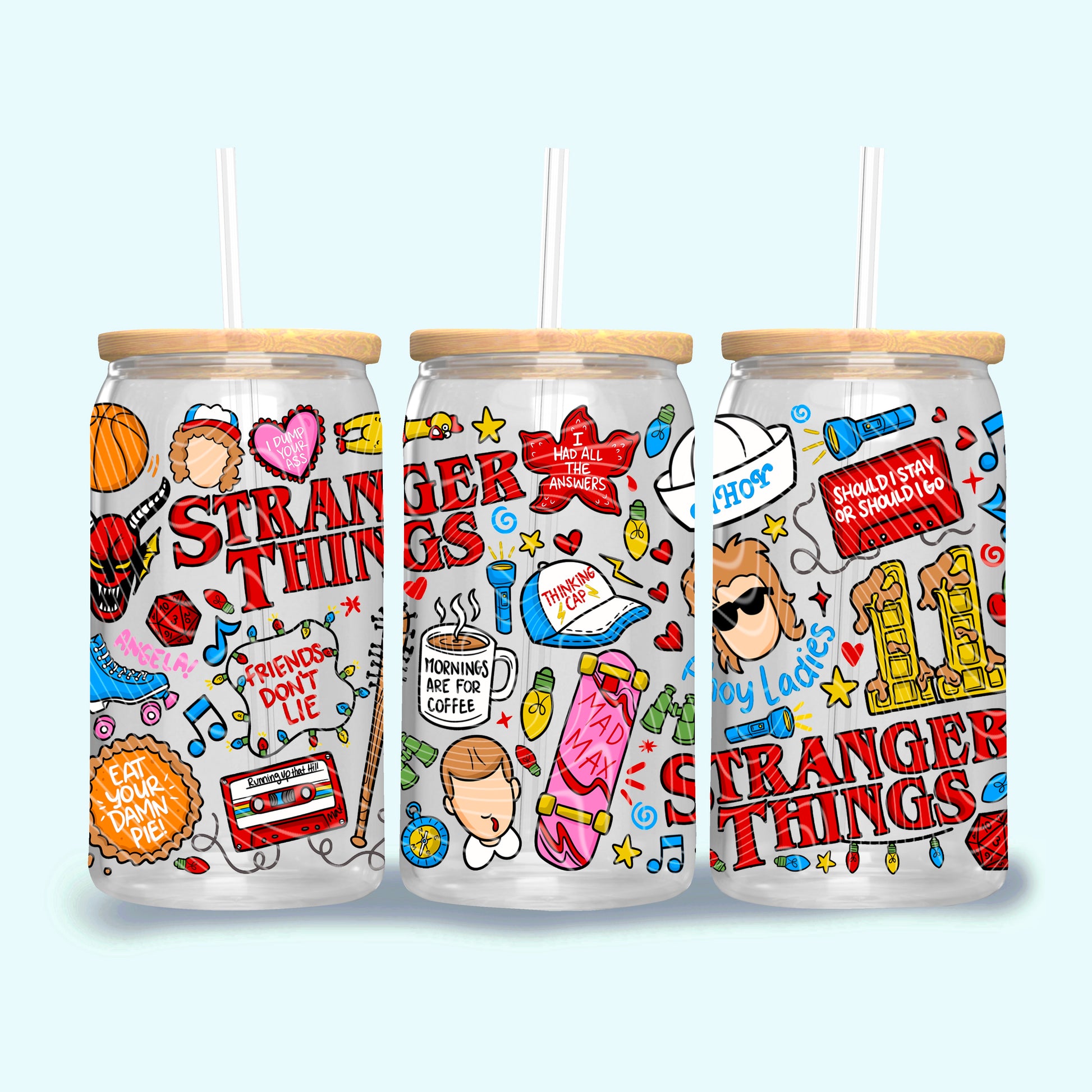 Stranger Doodle Collage. 16 oz UV DTF decal.