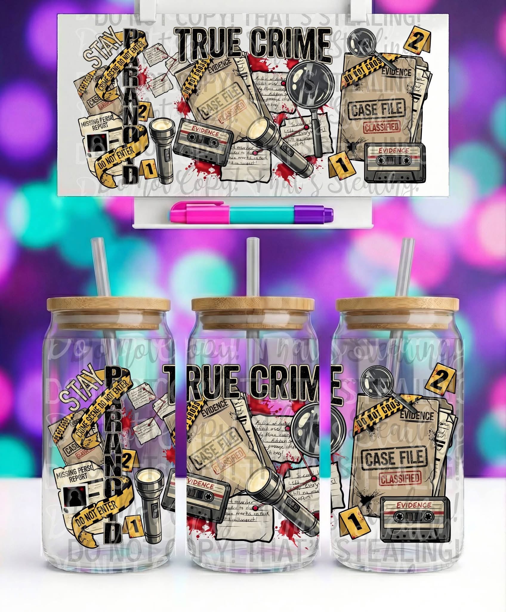 True Crime. 16 oz UV DTF Transfer.